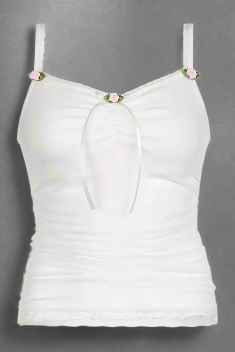 White Bow Lace Camis Top