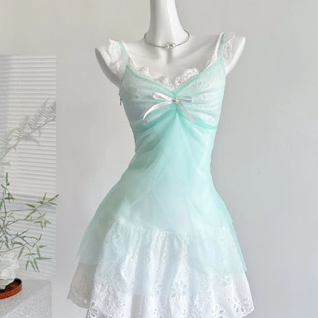 Mermaidcore Seafoam Coquette Ruffle Angel Dress