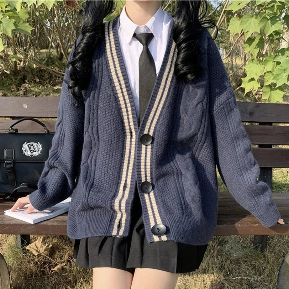 Élevez votre style académique avec ce cardigan Varsity Preppy Navy. Avec des rayures audacieuses et un design confortable en tricot, ce pull boutonné incarne la mode scolaire classique avec une touche moderne. Parfait pour superposer une chemise et une cravate croustillantes pour un look raffiné et inspiré du monde universitaire.