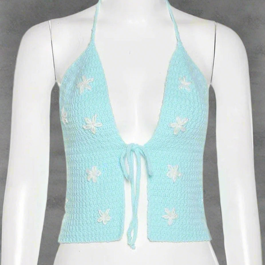 Crop top à licou floral