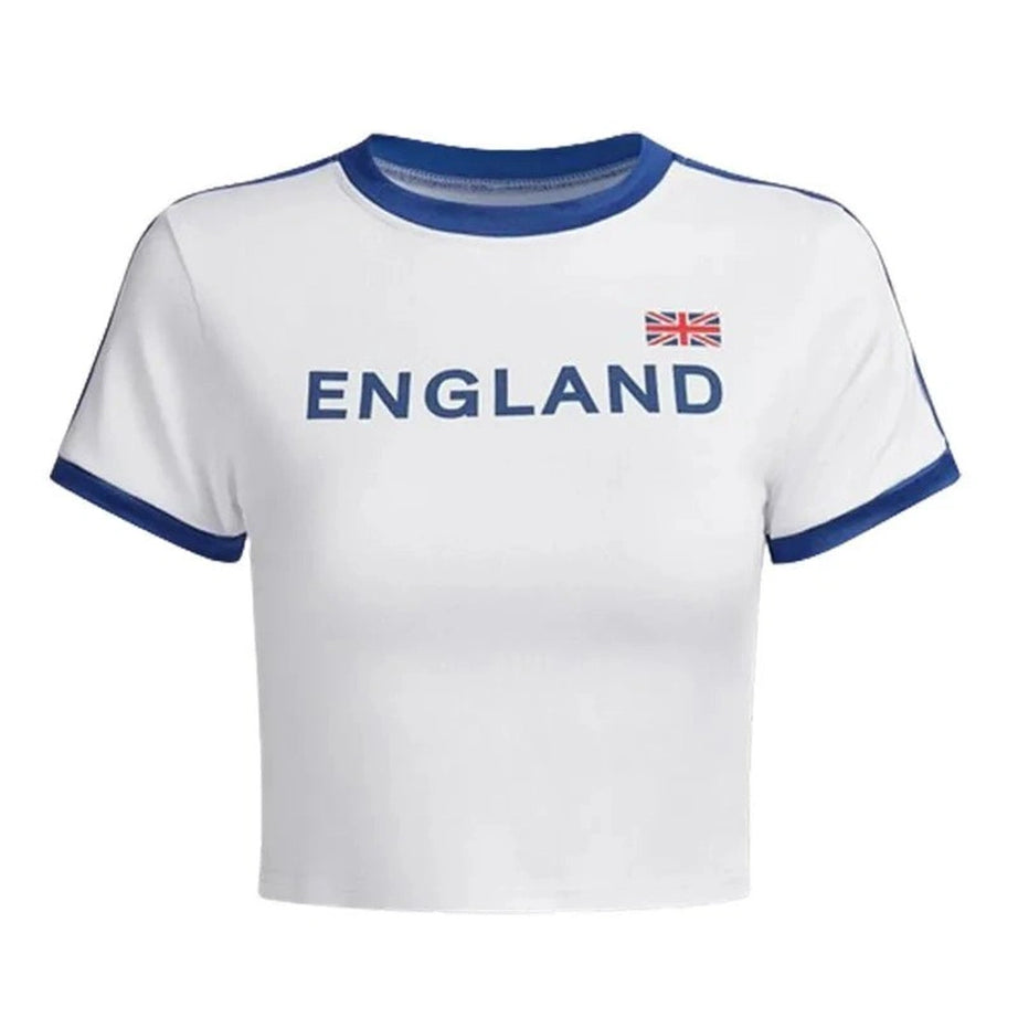 Ce tee-shirt de Ringer ajusté avec des lettrage audacieux "Angleterre" et le détail Union Jack capture l'estalgique de l'estalgique des années 90. Parfait pour jumeler avec un short en jean en détresse pour un look cool et inspiré.