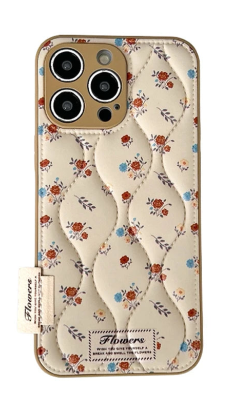 Un étui de téléphone confortable et matelassé avec des imprimés floraux délicats et une texture en tissu, parfait pour les amateurs de vintage, de softcore et de cottagecore.