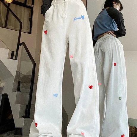 Kawaii Embroidered Bow Pants